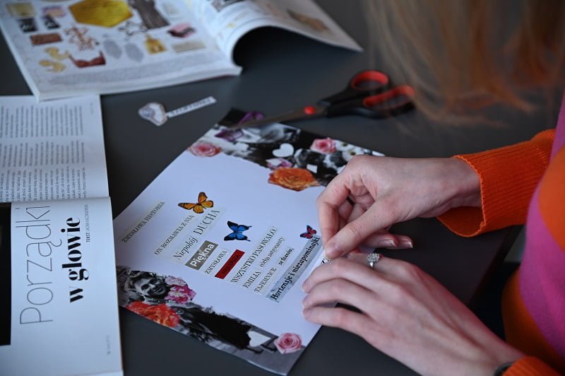 Kolaż to technika artystyczna polegająca na tworzeniu kompozycji plastycznej poprzez naklejanie na płótno lub papier różnych tworzyw, na przykład gazet, fotografii czy tkanin. Wykorzystamy ją również w trakcie warsztatów, podczas których każdy z uczestników stworzy własny wiersz o miłości. Zamiast notesu i długopisu, posłużymy się nożyczkami, gazetami, klejem i kartką papieru. Warto wcześniej przygotować sobie koncepcję – ułożyć wiersz albo spisać słowa, które chciałoby się wykleić.