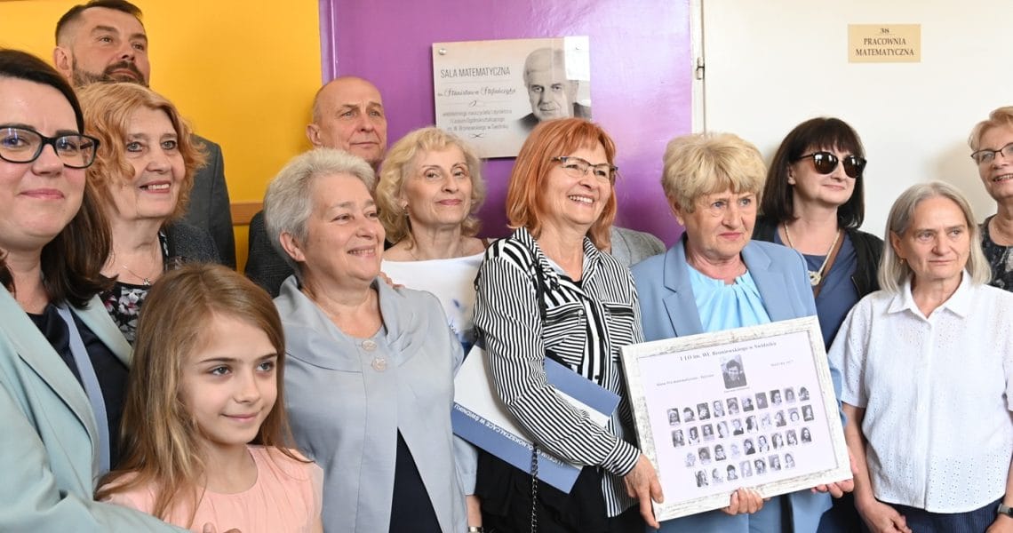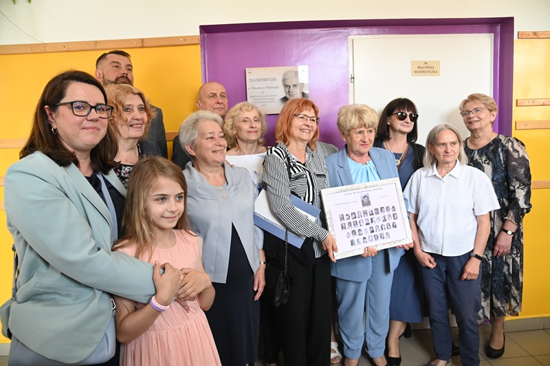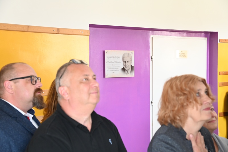 Na pierwszym piętrze nastąpiło natomiast uroczyste odsłonięcie dwóch tablic pamięci. Pierwsza z nich podsumowuje karierę zawodową śp. dyrektora Stefańczyka. Druga – nadaje imię sali nr 38, która jest od dziś „pracownią matematyczną im. Stanisława Stefańczyka”.