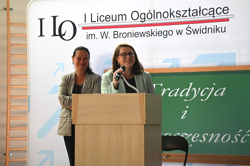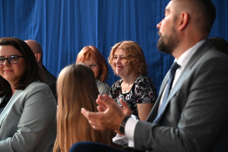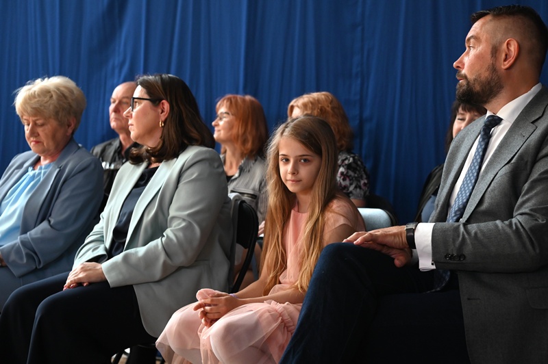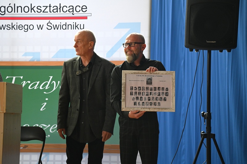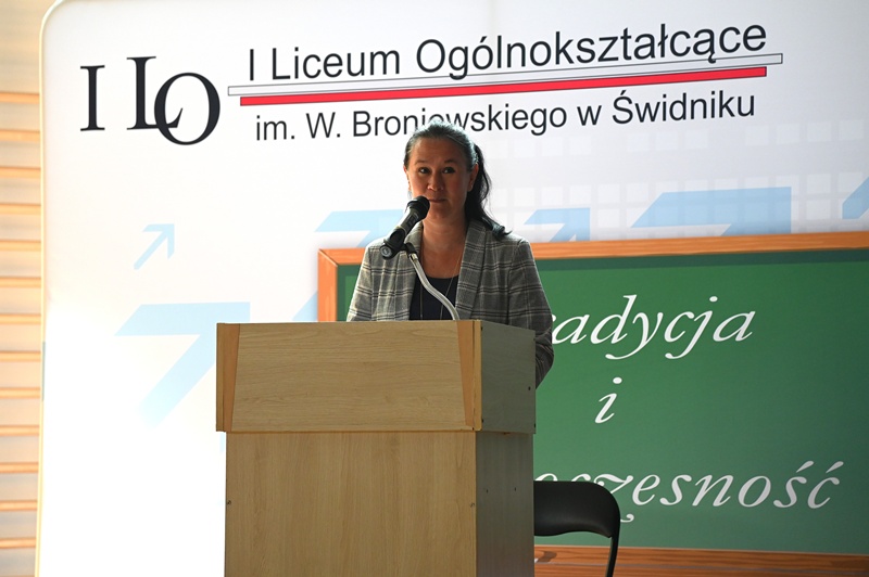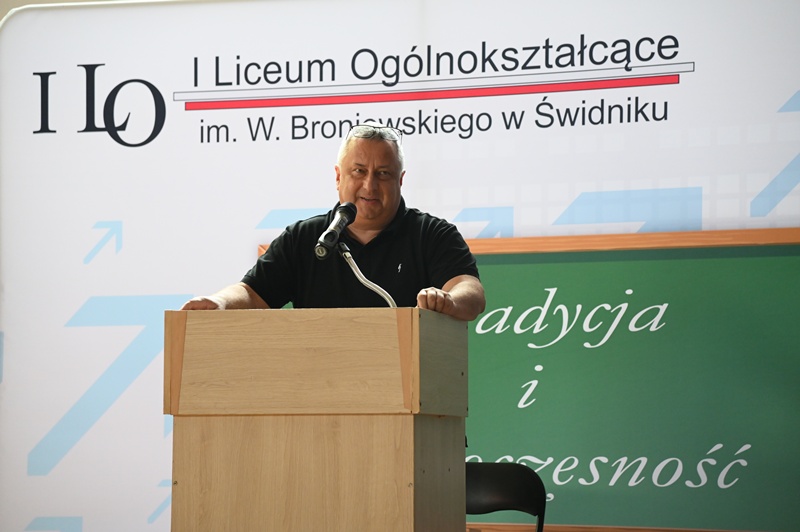 Część oficjalną rozpoczęła Aneta Jagieła, która przedstawiła krótką biografię śp. dyrektora Stefańczyka: – Urodził się 8 maja 1949 roku w Płonce Poleśnej, gdzie spędził dzieciństwo. Potem ukończył I LO w miejscowości Wysokie. Tam zdawał maturę, a w 1971 roku ukończył studia na kierunku matematyka, specjalizacja metody numeryczne, na Uniwersytecie Marii Curie-Skłodowskiej. W 1999 roku ukończył, również na UMCS, studia podyplomowe z informatyki, która była jego drugą wielką pasją. Po ukończeniu studiów matematycznych przez rok pracował w świdnickim WSK, ale w 1972 roku rozpoczął pracę w I Liceum Ogólnokształcącym. W 1978 roku został powołany na stanowisko zastępcy dyrektora szkoły, a funkcję tę sprawował przez 24 lata. W 2004 roku objął stanowisko dyrektora, które pełnił do 2023 roku, czyli do momentu, gdy przeszedł na emeryturę. Stanisław Stefańczyk był więc z „Bronkiem” związany przez 51 lat. Do jego największych działań należą, między innymi, komputeryzacja szkoły, organizacja nauki wybieranych przez ucznia indywidualnie przedmiotów rozszerzonych, organizacja międzyoddziałowych grup języków, wprowadził też program klasy Cyber.Mil. W latach 1979-1980 odbyły się w naszej szkole pierwsze zajęcia z informatyki. Specjalnie na te zajęcia komputery były przywożone na jeden dzień z Lublina, a następnie odwożone. To była prawdziwa determinacja człowieka, który miał pasję. Właśnie za tę pasję i poświęcenie dla szkoły oraz Świdnika został wielokrotnie uhonorowany odznaczeniami i nagrodami. Był odznaczony Medalem Komisji Edukacji Narodowej, Amicus Civitas, otrzymał Złoty Medal Prezydenta RP, a także został Świdniczaninem Roku. Dobra szkoła matematyki pomogła wielu osobom w osiągnięciu sukcesów zawodowych. Na uwagę zasługuje cytat pana dyrektora, który wielokrotnie powtarzał: „Trzeba wiedzieć, co się mówi, a nie mówić, co się wie”. Absolwenci zapamiętali go jako wybitnego matematyka, bardzo dobrego pedagoga, wychowawcę przyjaznego uczniowi, doskonałego organizatora. Miał zawsze czas, był otwarty na inicjatywy młodzieży, świetnie dogadywał się i współpracował z uczniami. Będzie najlepiej, kiedy powiedzą o tym sami absolwenci.