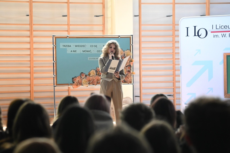Justyna Stefańczyk, córka Stanisława Stefańczyka, podziękowała w imieniu swoim oraz rodziny za tak ogromne wyróżnienie taty: – Dziś pani dyrektor wspominała, że tato dostał w swoim życiu wiele odznaczeń i medali. Otrzymywał dowody wdzięczności i docenienia swojej pracy wielokrotnie. Jestem jednak przekonana, że dzisiejsze wyróżnienie byłoby dla niego szczególne, jeśli nie najważniejsze. Nie było dla niego bardziej ukochanego miejsca, niż mury I Liceum. Nie było dla niego bardziej kochanej społeczności, niż ta szkolna. Wszystkim państwu, którzy przyczynili się do tego wyróżnienia, ogromnie dziękuję. Jestem przekonana, że tato jest z nami i się do wszystkich uśmiecha. Życzę nam, by ten jego uśmiech był dla nas ogromną inspiracją.