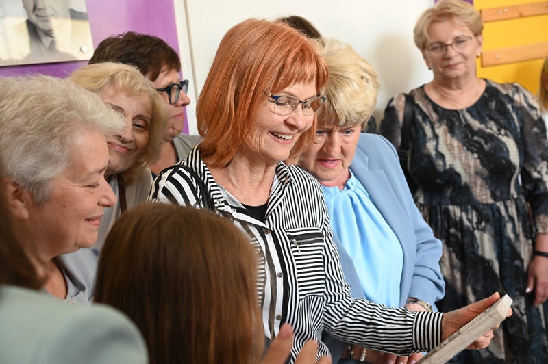 W imieniu uczniów pierwszej klasy Stanisława Stefańczyka głos zabrała Barbara Kasprzak: – Minął rok, kiedy pożegnaliśmy naszego drogiego wychowawcę i przyjaciela. To odejście było dla nas, jego byłych uczniów, ogromnym szokiem. Planowaliśmy wtedy wspólne spotkanie, na którym chcieliśmy po raz kolejny szczególnie uhonorować naszego wspaniałego nauczyciela. Tymczasem przyszło nam się zmierzyć z bólem i trudem rozstania. Nie znaleźliśmy wtedy wystarczających słów. Dlatego dziś, jako wychowankowie pierwszej i jedynej klasy prowadzonej przez Stanisława Stefańczyka, nie wyobrażamy sobie, żeby mogło nas zabraknąć w gronie osób, które tak gorąco pragną zachować pamięć o nim. Wszyscy wiemy o jego wybitnej inteligencji, charyzmatycznej osobowości i niezwykłym talencie pedagogicznym. Jednak o tym, jakim był wychowawcą, możemy opowiedzieć tylko my. Jako początkujący nauczyciel i wychowawca wysoko postawił nam poprzeczkę. Bywał surowy i bardzo wymagający – tak go postrzegaliśmy jako pierwszoklasiści. Nauka przynosiła jednak efekty. Jego dar tłumaczenia sprawiał, że pokochaliśmy matematykę i uwierzyliśmy, że to królowa nauk. Wszyscy, nie wyłączając późniejszych humanistów. Z obowiązku, a potem prawie dowolnie, rozwiązywaliśmy tysiące zadań. Dzięki temu matura z matematyki okazała się dla nas naprawdę prosta. Matematyczny profil klasy nobilitował nas do tego stopnia, że ułożyliśmy swoisty hymn klasowy: „My jesteśmy zgraja sora Stefańczyka. Nasze hasło matma, odzew – fizyka. Równanie na prawo, równanie na lewo, słupek w przód, trzy zadania wstecz”. Przez 4 lata zbudowała się między nami i wychowawcą więź oparta na wzajemnym zaufaniu, ale też szacunku dla autorytetu. Sor Stefańczyk znalazł wspólny język z nami, młodymi ludźmi. Miał dystans do siebie, pozwalał parodiować siebie w dniu nauczyciela. Ze zrozumieniem reagował na nasze szalone pomysły, na przykład odmalowanie ścian w sali w jabłuszka. Nie przewidział jednak, że przy jego biurku pojawi się ogryzek z robaczkiem, ale nie miał do nas o to żalu. I tak przez następne lata, wśród tych jabłuszek, uczyliśmy się, aż do kolejnego remontu sali. Był zaangażowany w życie klasy do tego stopnia, że poświęcał nam wiele swojego prywatnego czasu, a jego dom był dla nas zawsze otwarty. W czasach szkolnych stworzyliśmy z nim wspólnotę, która przetrwała do dziś. Po skończeniu szkoły spotykaliśmy się często w różnych miejscach i formułach. Zdarzyło nam się nawet zorganizować trzydniowy zjazd nad jeziorem, w którym uczestniczyli nasi współmałżonkowie i chmara naszych dzieci. Zawsze czynnie włączał się w celebrowanie spotkań. Z czasem dystans wiekowy, który nas dzielił, zmniejszył się, a wychowawca stał się przyjacielem. Z perspektywy lat czujemy jak wielkie mieliśmy szczęście, że w tym ważnym okresie życia spotkaliśmy tak wspaniałego człowieka. To pod jego skrzydłami rośliśmy i dojrzewaliśmy do naszych życiowych zadań. Do końca doświadczaliśmy jego bliskości i wsparcia. Był i pozostanie na zawsze piękną częścią naszego życia. Pragniemy dziś podarować szkole pamiątkę. Mamy nadzieję, że wzbogaci ona wspomnienie o Stanisławie Stefańczyku o ten ważny aspekt, jakim było jego wychowawstwo. Chcemy rekonstruować tradycję przygotowywania tablo, które, mamy nadzieję, znajdzie miejsce i upamiętni zgraję sora Stefańczyka w naszej dawnej sali, a od dziś w sali matematycznej imienia Stanisława Stefańczyka.