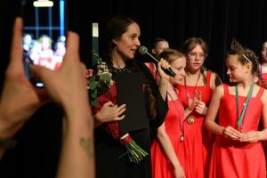 Koncert stał się również okazją do podziękowań. Monika Wójcik, dyrektor Miejskiego Ośrodka Kultury pogratulowała bohaterkom wydarzenia talentu oraz oddania podczas wielogodzinnych treningów. Gratulacje i najlepsze życzenia skierowała również do instruktor Joanny Dudek-Kurowiak.