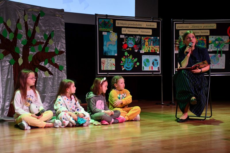 – Witam zgromadzonych w sali kameralnej Miejskiego Ośrodka Kultury gości z Urzędu Miasta, Straży Miejskiej i Przedsiębiorstwa Komunalnego Pegimek, dzieci i nauczycieli ze świdnickich przedszkoli. Dziękuję za przybycie i życzę dobrej zabawy. Przegląd uważam za otwarty! – mówiła Renata Wójcik, dyrektor ZP nr 1, w którym edukacja ekologiczna realizowana jest na wielu płaszczyznach, na przykład poprzez wycieczki, spacery, eksperymenty, prace plastyczne, programy ekologiczne.