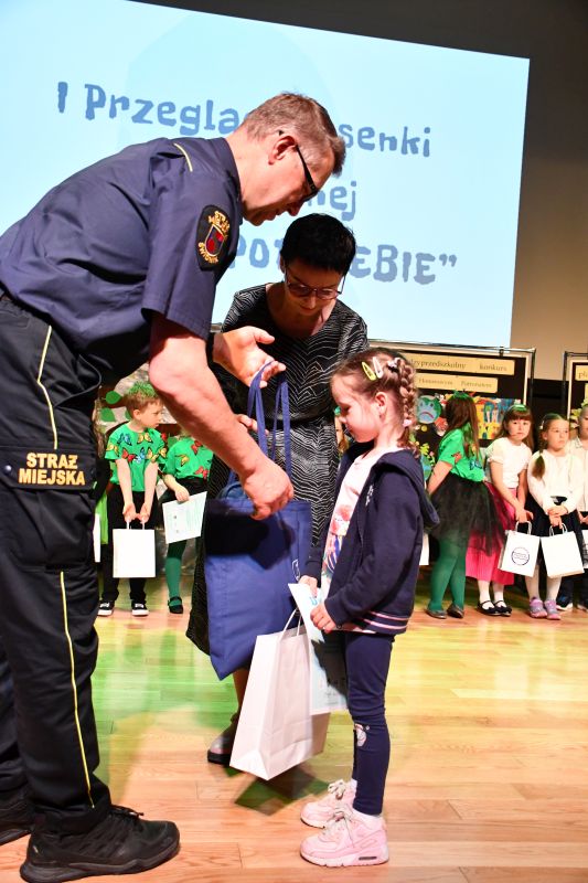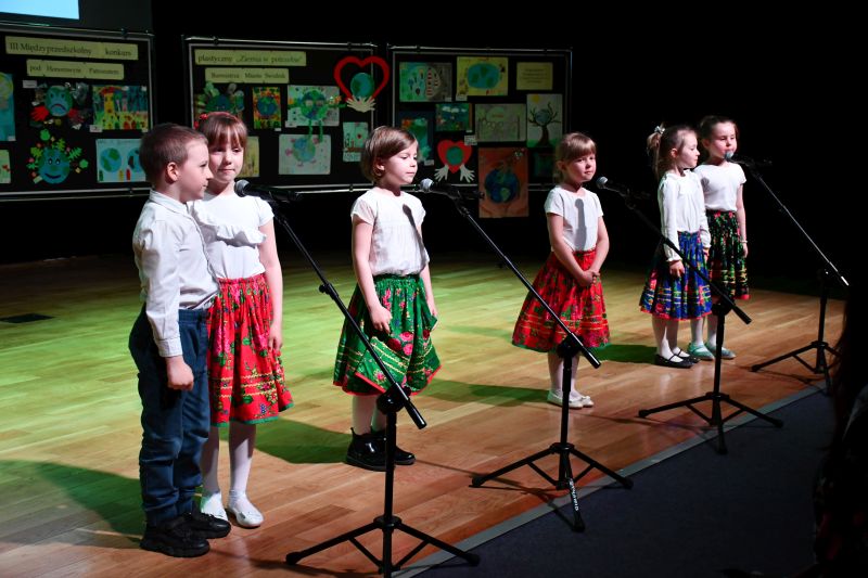 W I Przeglądzie Piosenki Ekologicznej zaprezentowali się: Elfy z Niepublicznego Przedszkola i Żłobka „Tęczowy Domek” (op. Karolina Gierczyńska), Wesołe Nuteczki z Dwójeczki z P nr 2 (op. Iwona Tarkowska i Julia Sapko), Ekoludki z Przedszkola nr 4 (Joanna Łuczko), Sówki z Przedszkola nr 6 (op. Magdalena Wierzbicka i Anna Szewczyk), Psotki z Przedszkola nr 7 (op. Karolina Lasota i Marta Książek), Pszczółki z Oddziałów Przedszkolnych przy SP nr 4 (op. Agnieszka Smarzak), Wesołe Nutki z Oddziałów Przedszkolnych przy SP nr 3 (op. Magdalena Zabiegły), Dzwoneczki z Przedszkola nr 3 (op. Beata Makuch i Iwona Jęczeń). Za występy wszystkie dzieci otrzymały upominki.
