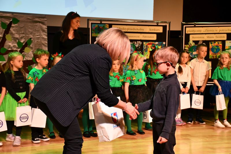 – Witam zgromadzonych w sali kameralnej Miejskiego Ośrodka Kultury gości z Urzędu Miasta, Straży Miejskiej i Przedsiębiorstwa Komunalnego Pegimek, dzieci i nauczycieli ze świdnickich przedszkoli. Dziękuję za przybycie i życzę dobrej zabawy. Przegląd uważam za otwarty! – mówiła Renata Wójcik, dyrektor ZP nr 1, w którym edukacja ekologiczna realizowana jest na wielu płaszczyznach, na przykład poprzez wycieczki, spacery, eksperymenty, prace plastyczne, programy ekologiczne.