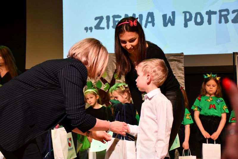 Spotkanie było również okazją do ogłoszenia wyników III Konkursu plastycznego „Ziemia w potrzebie”. Nagrody laureatom wręczyli Bożena Zapalska, naczelnik wydziału zarządzania oświatą w UM, Janusz Wójtowicz i Renata Wójcik. I miejsce zajęła Dominika Rybka z OP przy SP nr 4, II Martyna Poniewozik z OP przy SP nr 3, III Kacper Gorzel z NPiŻ „Tęczowy Domek”. Wyróżnienia otrzymali: Anastazja Gałań z P nr 7, Kazimierz Lewczuk z P nr 6 i Weronika Brygoła z P nr 4.