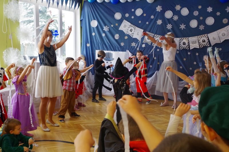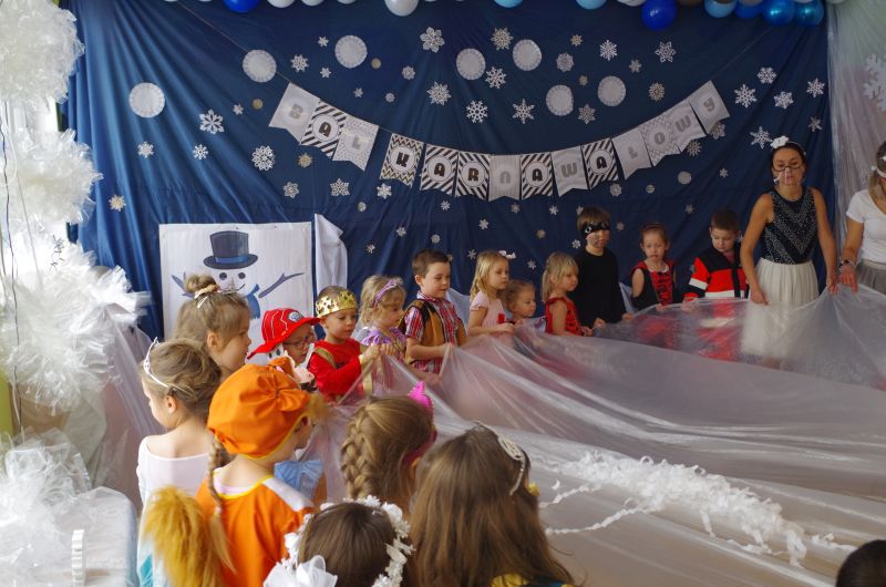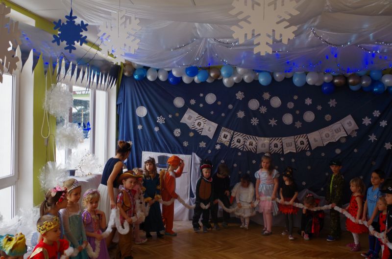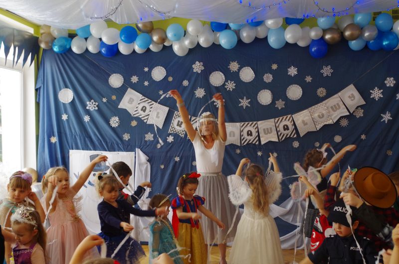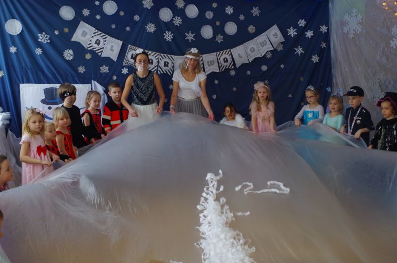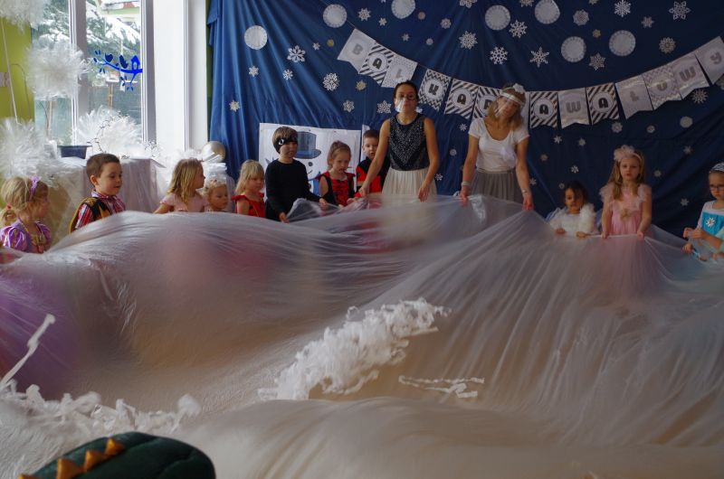 Przedszkole nr 4 zamieniło się w zimową krainę, w której odbył się wielki bal i śnieżne zabawy sensoryczne. Wzięły w nich udział dzieci z grup Montessori oraz grupa czwarta.