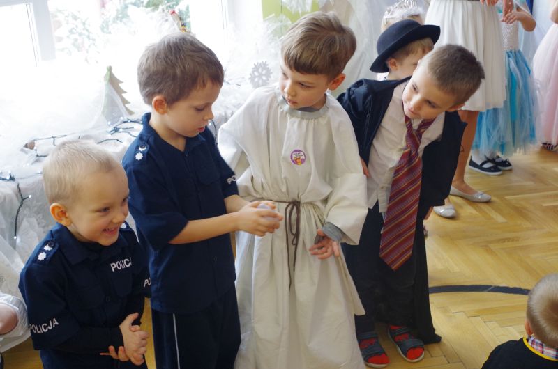 Spotkanie to kolejna odsłona cyklu „Sensoryczne pory roku”, rozpoczętego w placówce jesienią. Jego inicjatorką jest pani Angelika Biała, która razem z paniami Krystyną Ochalik i Eweliną Guz, zaprosiła najmłodszych do zimowych aktywności sensorycznych przy akompaniamencie muzyki klasycznej. Dzieci miały okazję na własnej skórze doświadczyć jak zimny jest lód, wykonać taniec śnieżynek i stworzyć zamieć śnieżną. Po sensorycznym spotkaniu z zimą przyszedł czas na taniec i wspólną zabawę.
