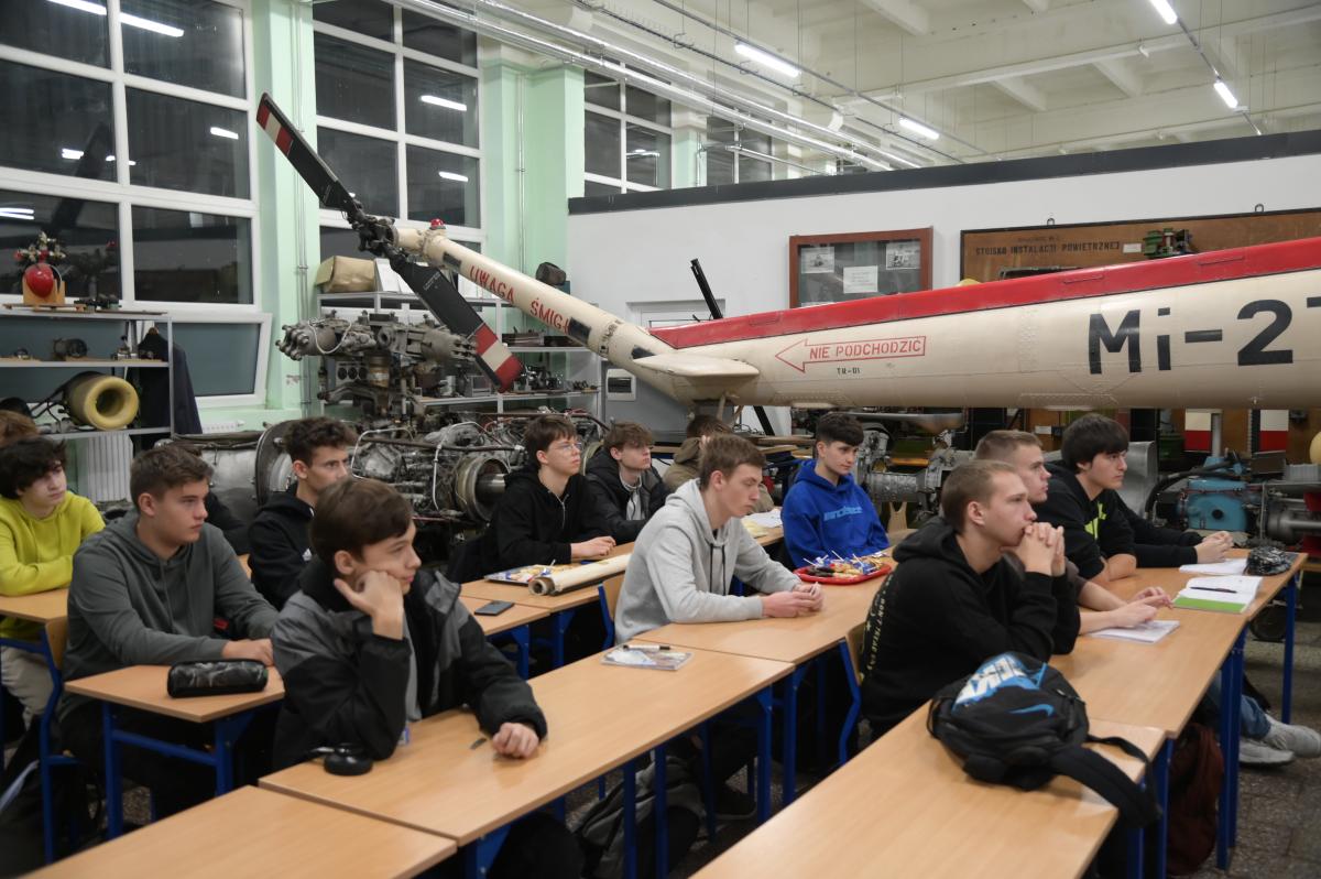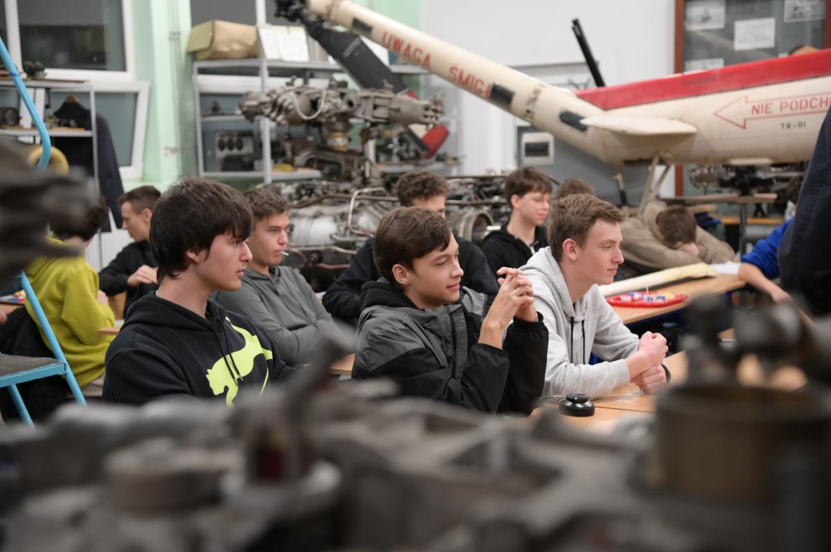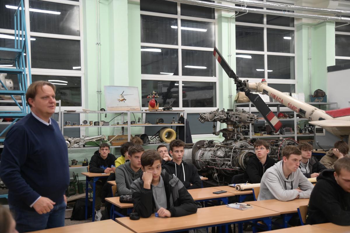 – Podstawa programowa zapewnia im naukę języka angielskiego i są świadomi wagi jego opanowania dla swojej zawodowej przyszłości. Grupa, z którą się dzisiaj Państwo spotykacie kształci się na profilu mechanik lotniczy. Niektórzy z nich kontynuują naukę w kierunku mechanicznym, konstruktorskim czy też pilotażu, niejednokrotnie dużych samolotów pasażerskich. Myślę, że to co Panowie mówicie jest dla nich pożywką utwierdzającą w przekonaniu o dokonaniu właściwego wyboru.